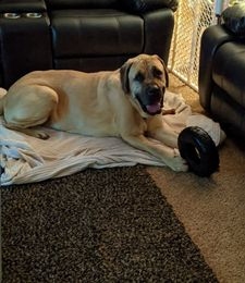Hello from the Coopers!! Just updating y'all on Ox. He's the best thing in the world. The past few days he has become more playful and more protective. He's getting along fine with our other dogs. He seems happy as he can be. Spoiled? Absolutely